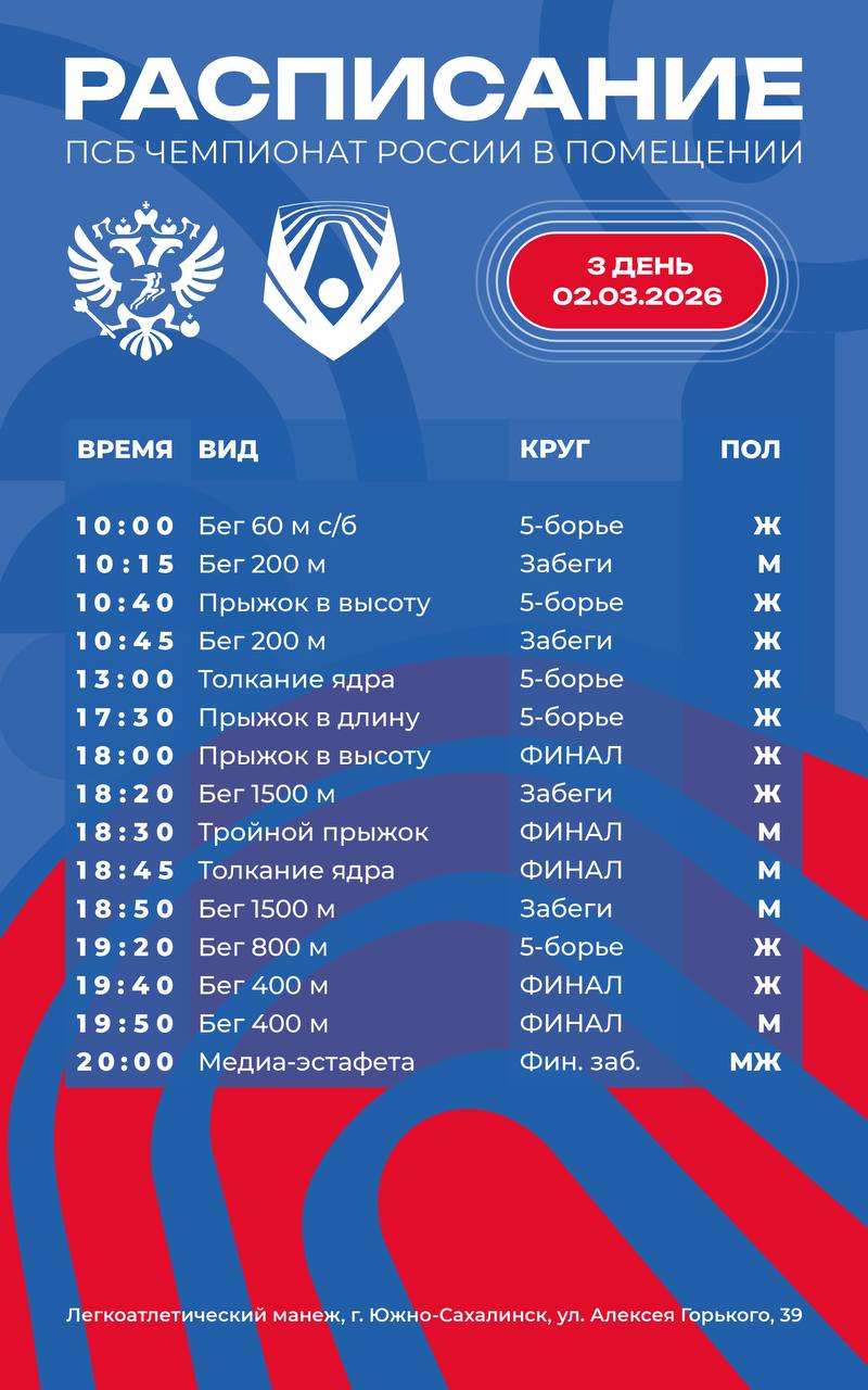 ПСБ Чемпионат России в помещении: день третий