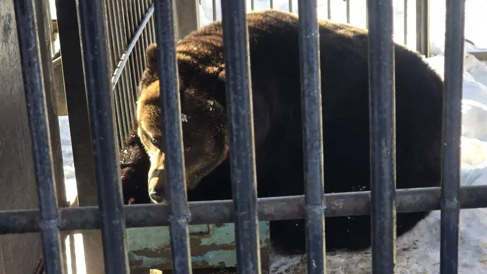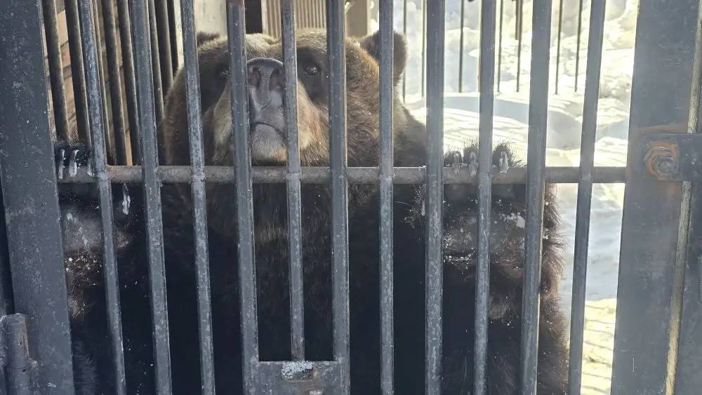 Любимцы островного зоопарка - бурые медведи Ваня и Юля, а также гималайская Ежа, - вышли из зимней спячки.
