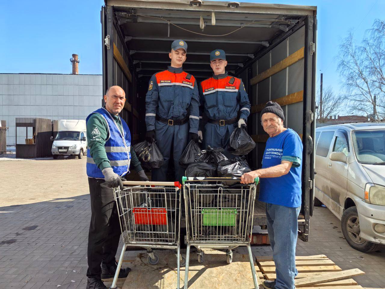 В пункте выдачи помощи работают волонтёры Национального центра помощи из Республики Татарстан, Сахалина, Республики Якутия и Камчатского края. Добровольцы трудятся совместно с сотрудниками МЧС России, помогая организовать выдачу гуманитарной помощи.