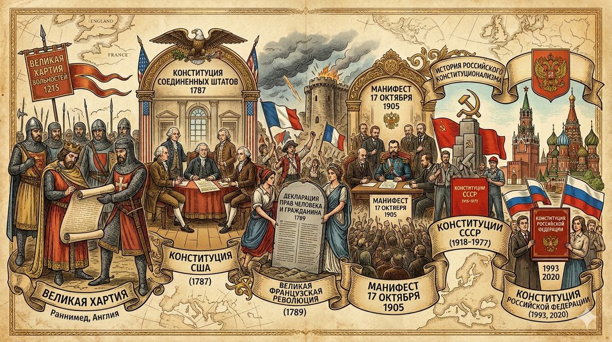 Конституция представляет собой главный документ, определяющий правила жизни в обществе. Это своего рода соглашение между человеком и государством, отражающее его права и обязанности. Безусловно, течение истории показало, что народ всегда стремился ограничить власть в своих действиях и защитить свои интересы.