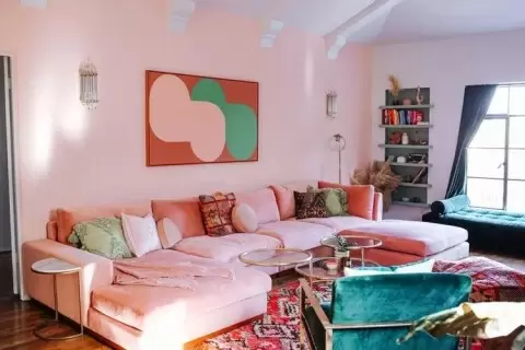 Если стена выглядит слишком захламленно, вместо этого стоит попробовать буквально «добавить веса» с помощью массивных произведений искусства. Большая картина или коллаж из нескольких изображений станет настоящей точкой фокуса. Например, сочетание глубокого синего и ярко-оранжевого цветов могут привнести в пространство живость и динамику. Не бойтесь экспериментов с формой и цветом — смелые решения всегда смотрятся выигрышно.