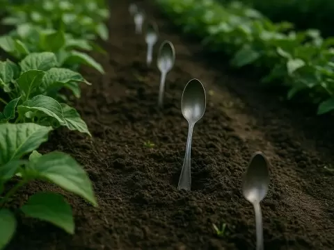 Металлические ложки, если их воткнуть в землю, способны существенно улучшить условия для роста растений. Эти простые предметы являются отличными проводниками, отражающими солнечные лучи от поверхности почвы, что помогает предотвратить ее перегрев и пересыхание. Особенно ощутим этот эффект в знойные дни, когда земля под ложками остается свежей и чуть влажной.