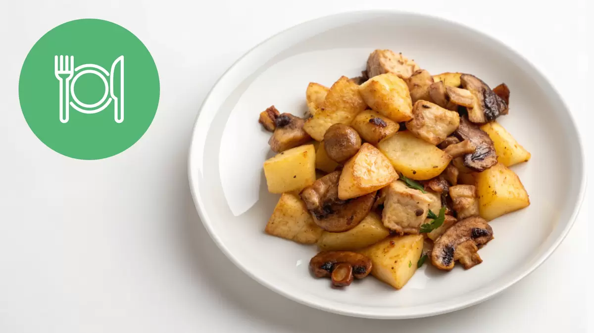 Этот сытный вариант станет отличным ужином для тех, кто ценит простоту и вкус. Запечённый картофель с курицей и грибами не требует особых кулинарных навыков, а его аромат соберет всех за столом.