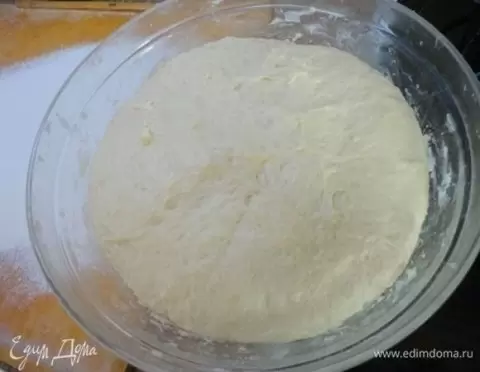 Для начала необходимо подготовить тесто. Нагрейте молоко и растопите в нем сливочное масло, после чего оставьте остывать. В миске соедините муку с дрожжами, добавьте остальные ингредиенты и теплую молочно-масляную смесь. Тщательно вымесите тесто в течение 10 минут, затем накройте его и оставьте в теплом месте для подъема.