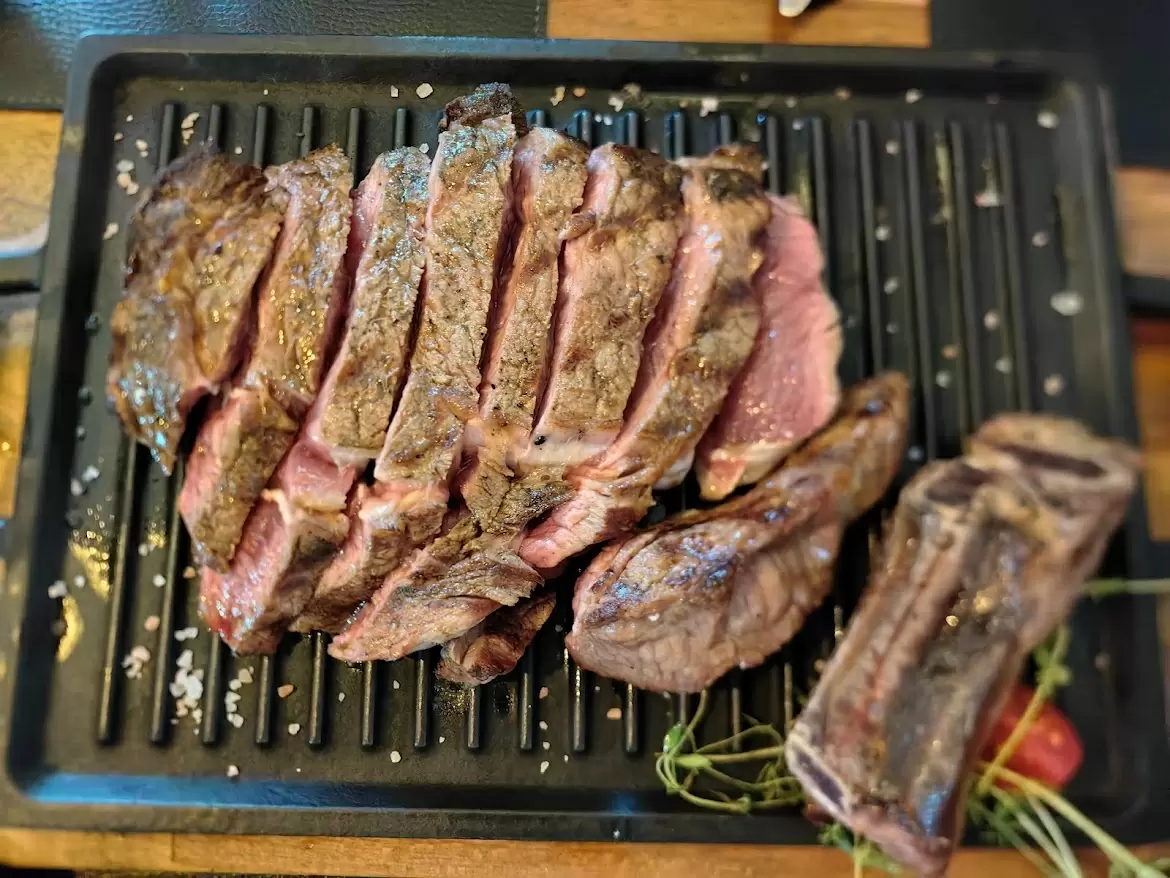 Обслуживал нас дружелюбный русскоговорящий персонал. Заказав стейк тальята и каракатицы, пара решила насладиться необычной кухней. Но получилось так, что стейк, который ожидали получить, оказался утопленным в масле с какими-то странными добавками. А баклажаны, приправленные не самой приятной цедрой цитрусовых, были комплиментом шеф-повара, хотя явно не пришлись по вкусу.