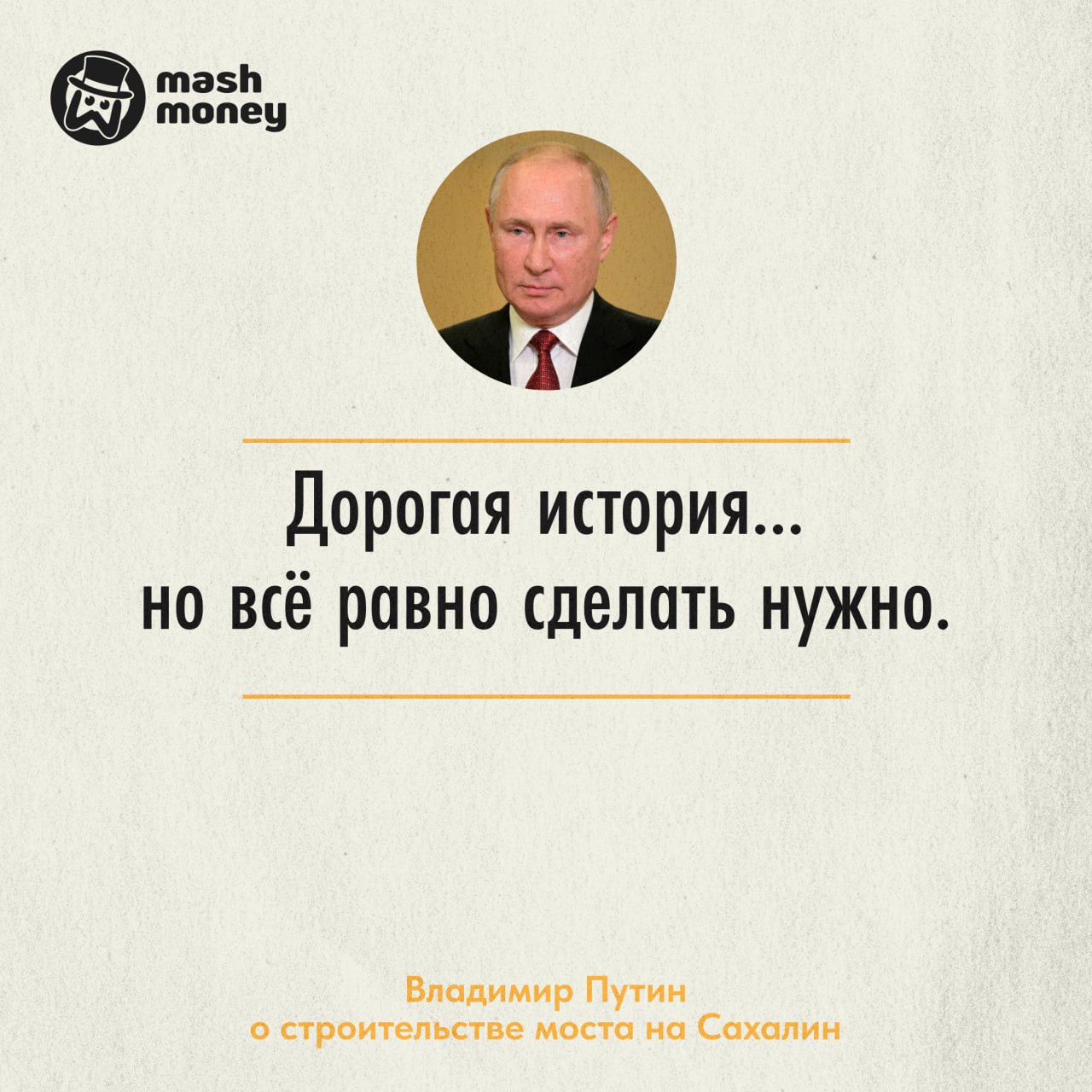 Мост на Сахалин — дорогая история, которую всё равно нужно реализовать. Об этом заявил Владимир Путин.
