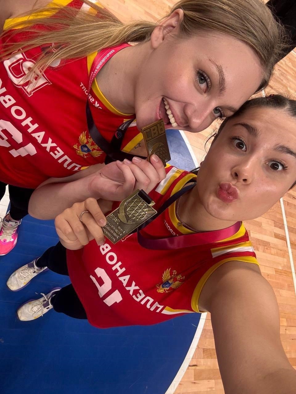 В составе «Плехановки» победе радовались выпускницы СШ по волейболу Виктория Огнева и Арина Щепанская.