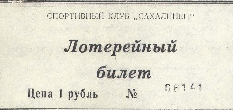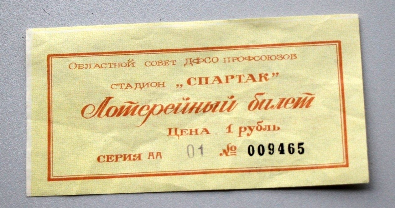 … конце 1980-х в Южно-Сахалинске на стадионе «Спартак» во время футбольных матчей проводились розыгрыши лотереи. По таким билетам можно было выиграть различную бытовую технику или мотоцикл